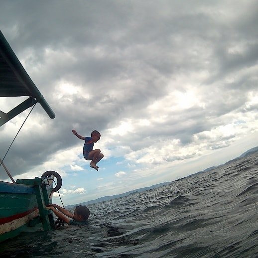 Bagi Harsya dan Nara yang sudah masuk air sejak usia mereka 8 bulan, berenang di sekitar perairan Pulau Pahawang tetap kami dampingi dengan penuh kewaspadaan.