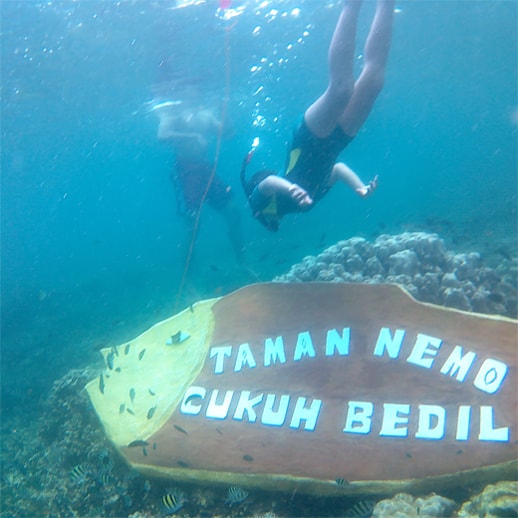 Dari 5 spot seru untuk snorkeling di Pulau Pahawang ini, kami hanya mendatangi 2 tempat, yaitu Taman Nemo Cukuh Bedil dan Gosong Bekri.