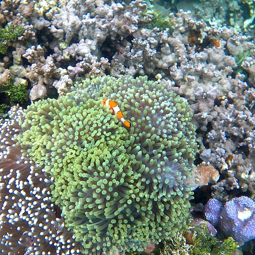 Anak-anak yang selama ini hanya melihat laut dari tayangan di saluran BBC Earth dan National Geographic juga girang melihat deretan terumbu karang, anemon (yang sudah Nara wanti-wanti sebelumnya agar kami semua tidak menyentuhnya karena menurutnya bisa menyetrum! 😄 ), belut, dan ikan-ikan kecil seliweran di situ.