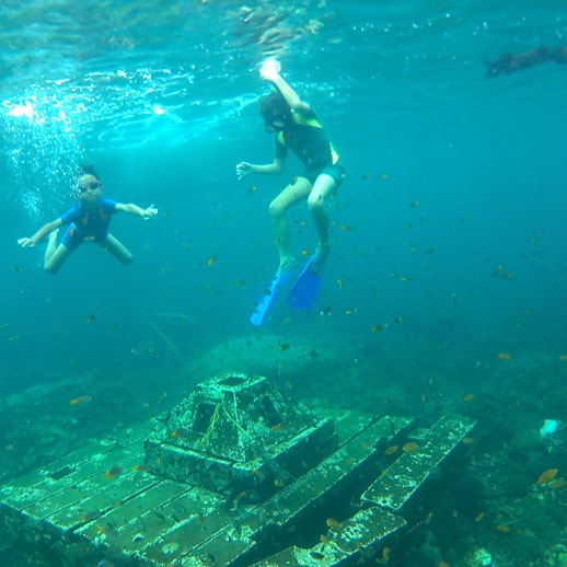 Di antara ikan-ikan yang berenang itu, Harsya dan Nara akhirnya bisa melihat langsung candi bawah laut yang berada di kedalaman 4 meter yang bikin keduanya penasaran.